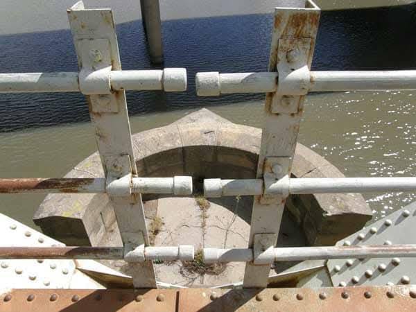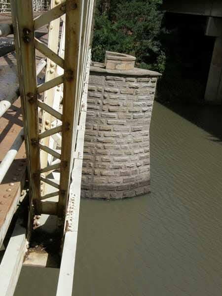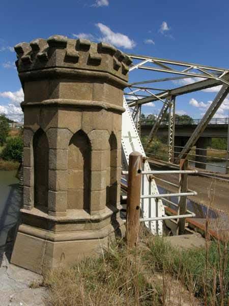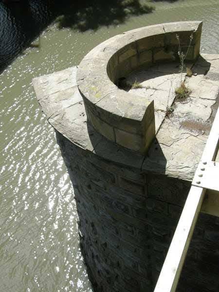 Die boë rus op sandsteenpilare met ñ sentrale pilaar of stut wat 2 boë van 42m elk ondersteun.