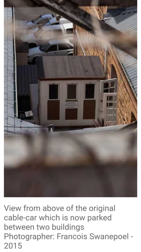 Die kabelspoor het laag oor St George str gegaan en ook oor 3 huise. Die eienaars is daarvoor vergoed en rytuie moes maar mooi koes vir die kabelkar.